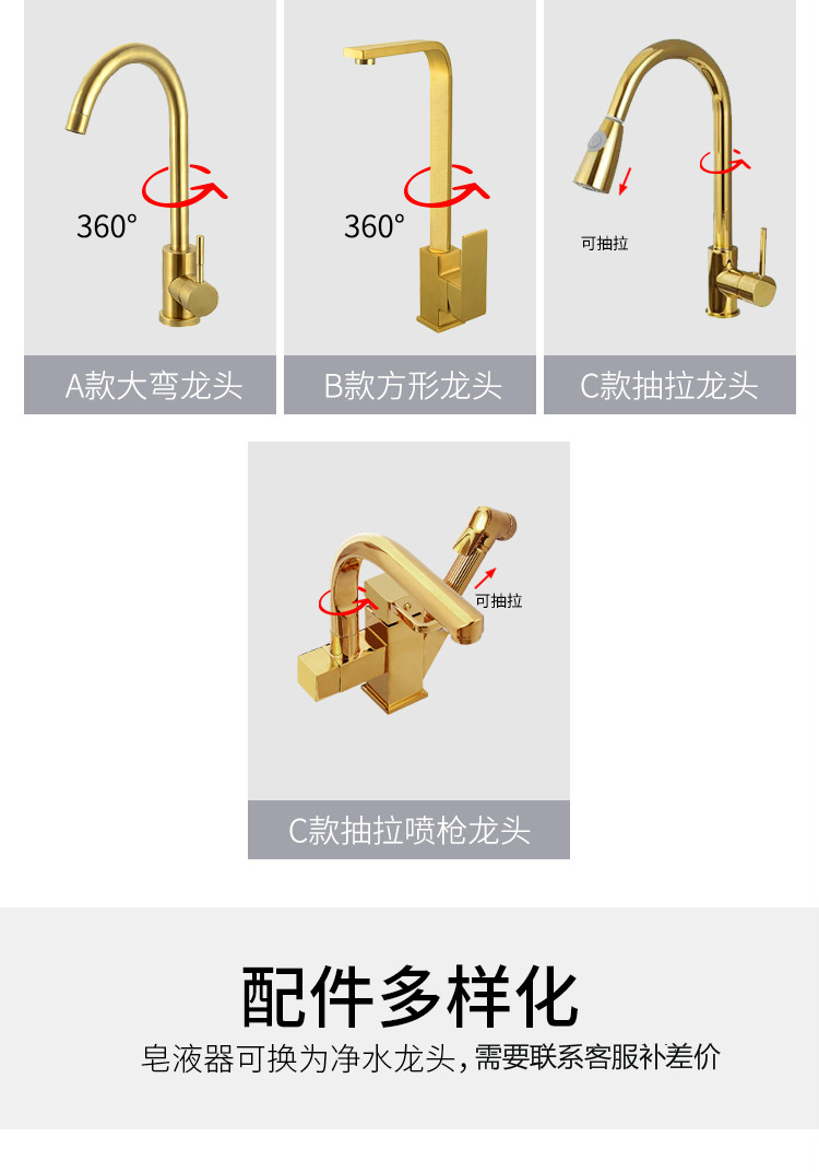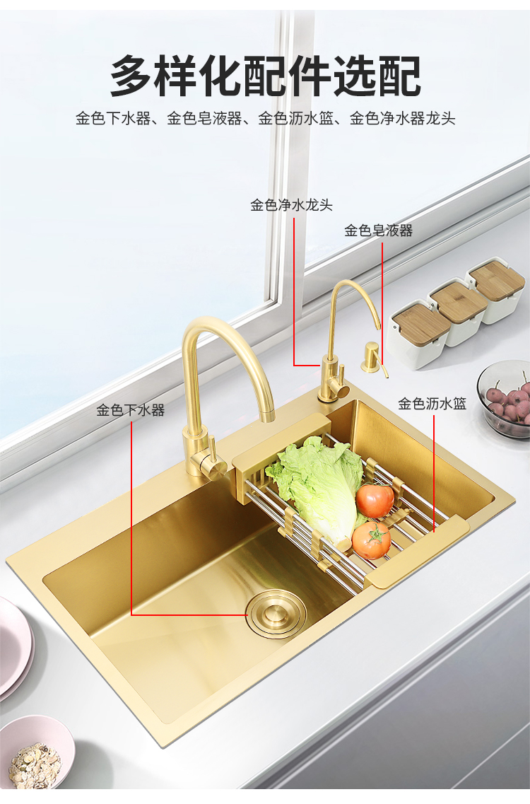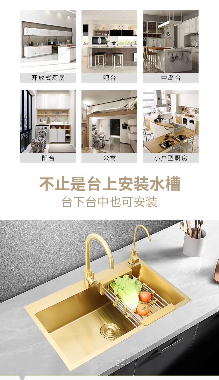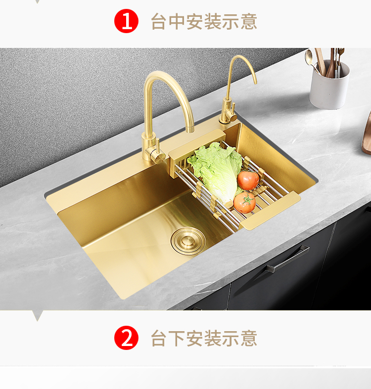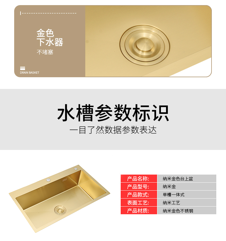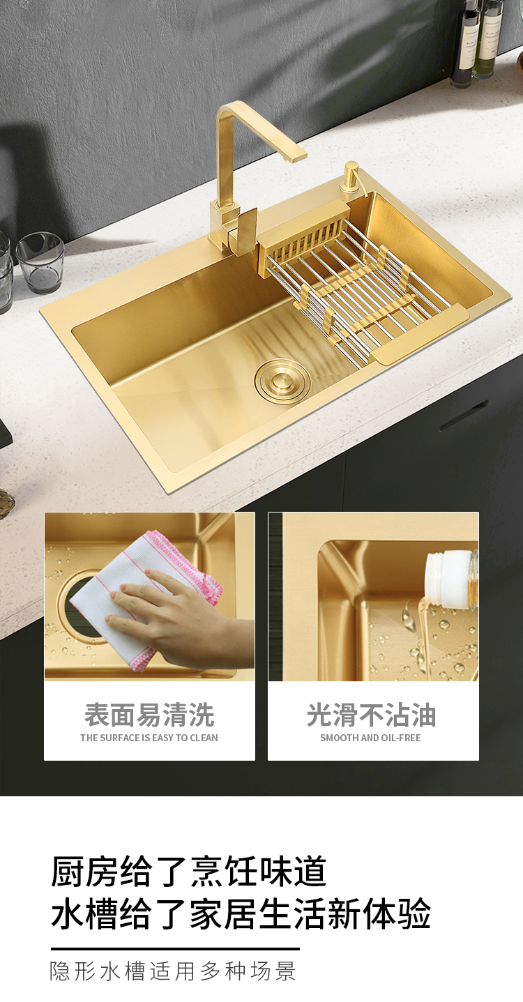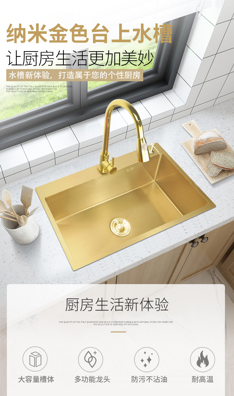 Nano gold kitchen stainless steel sink