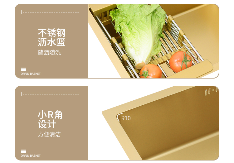 Nano gold kitchen stainless steel sink