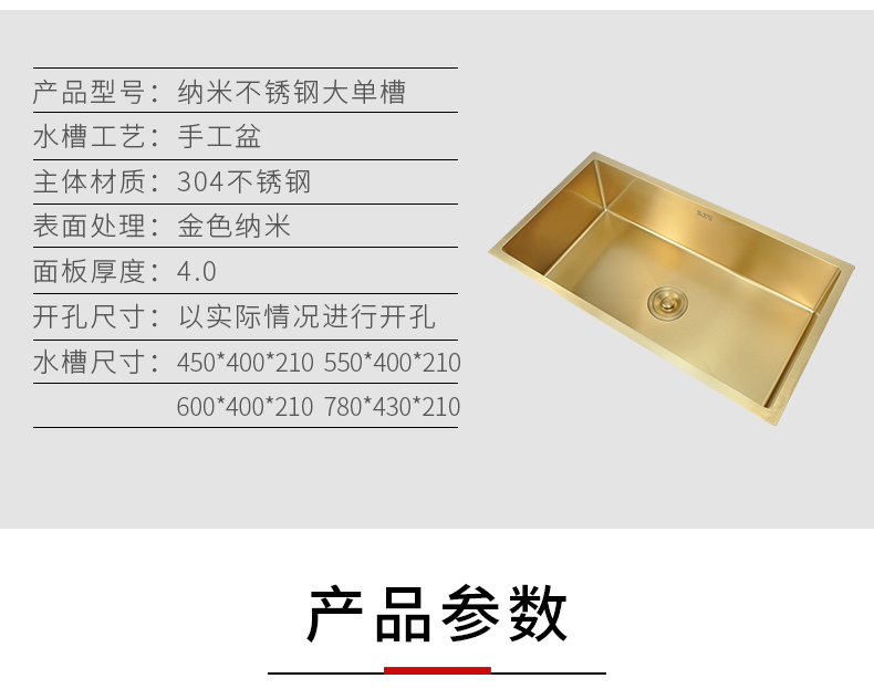 Nano gold kitchen stainless steel sink