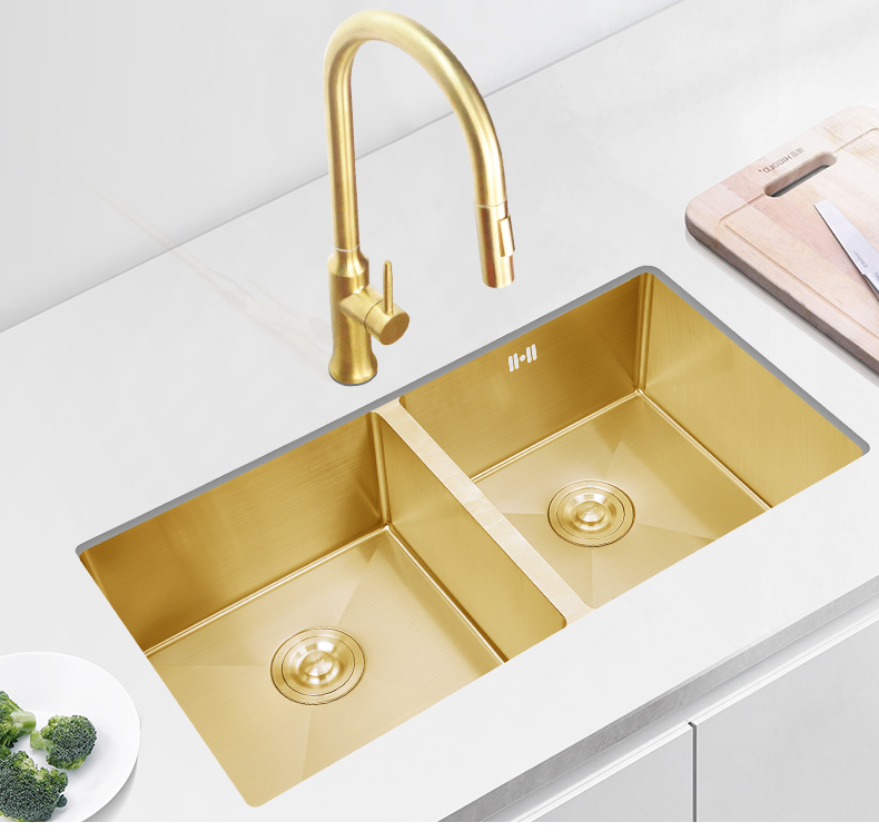 Golden kitchen sink double groove stainless steel