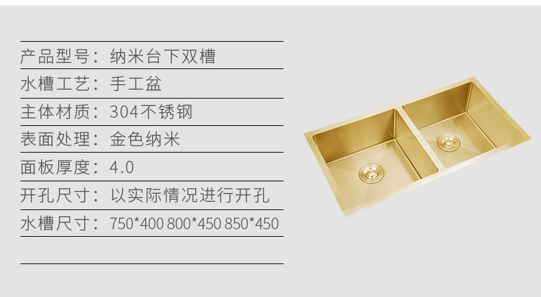 Nano gold kitchen stainless steel sink