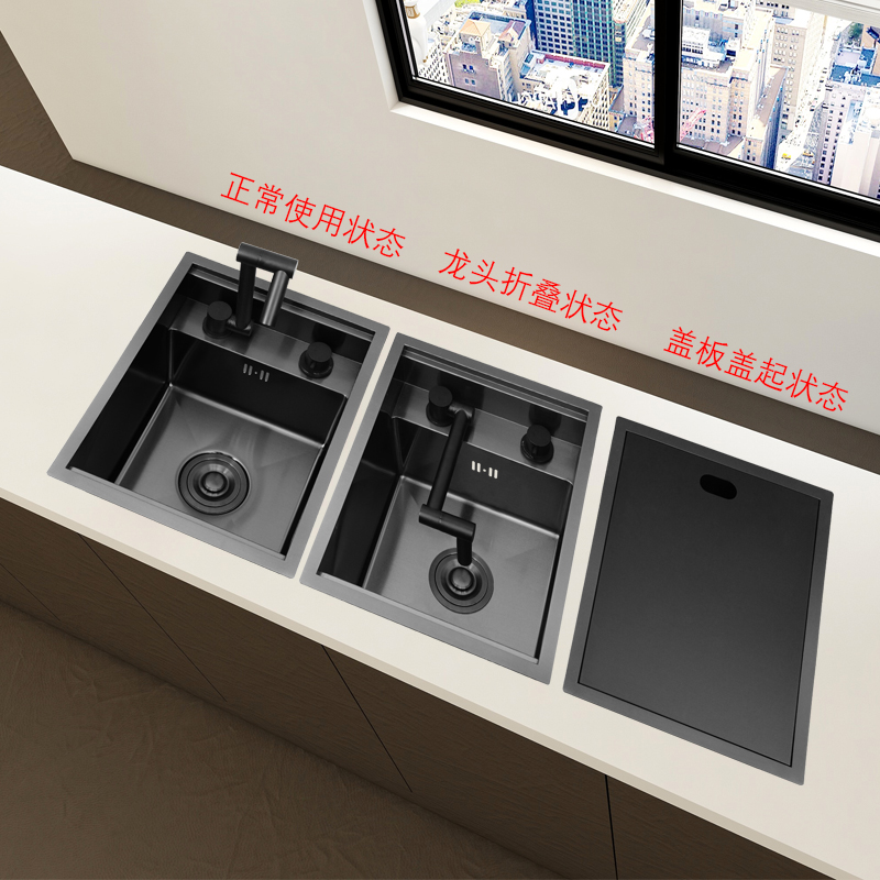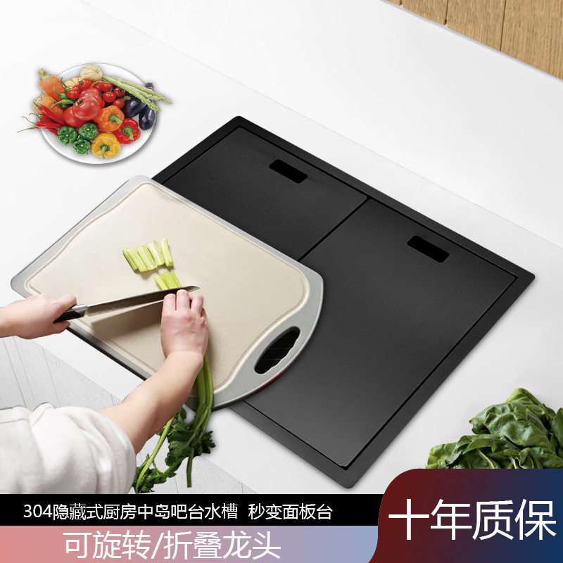 Black stainless steel dle isl bar hidden sink