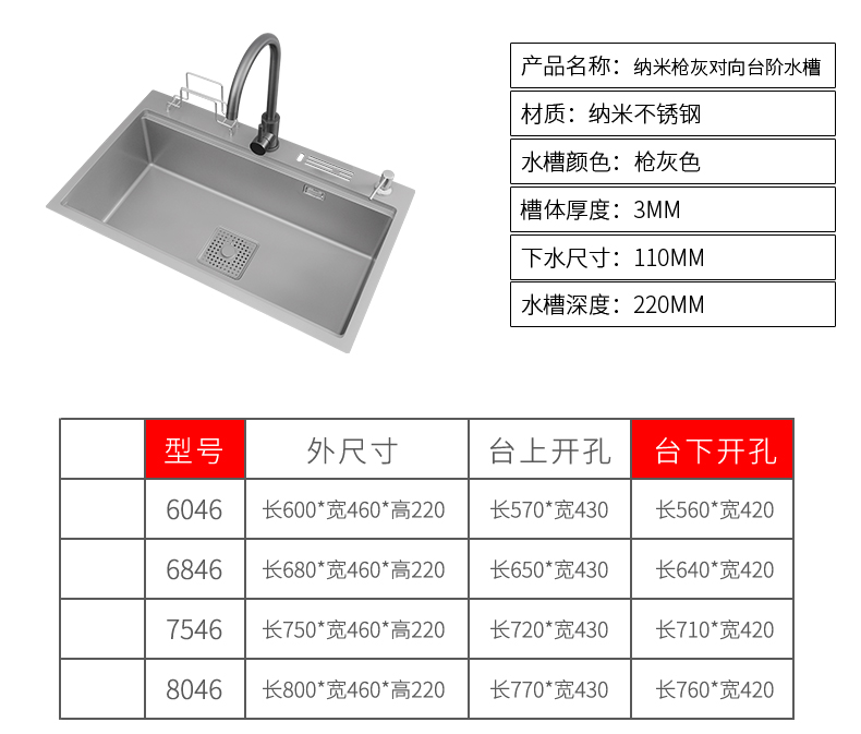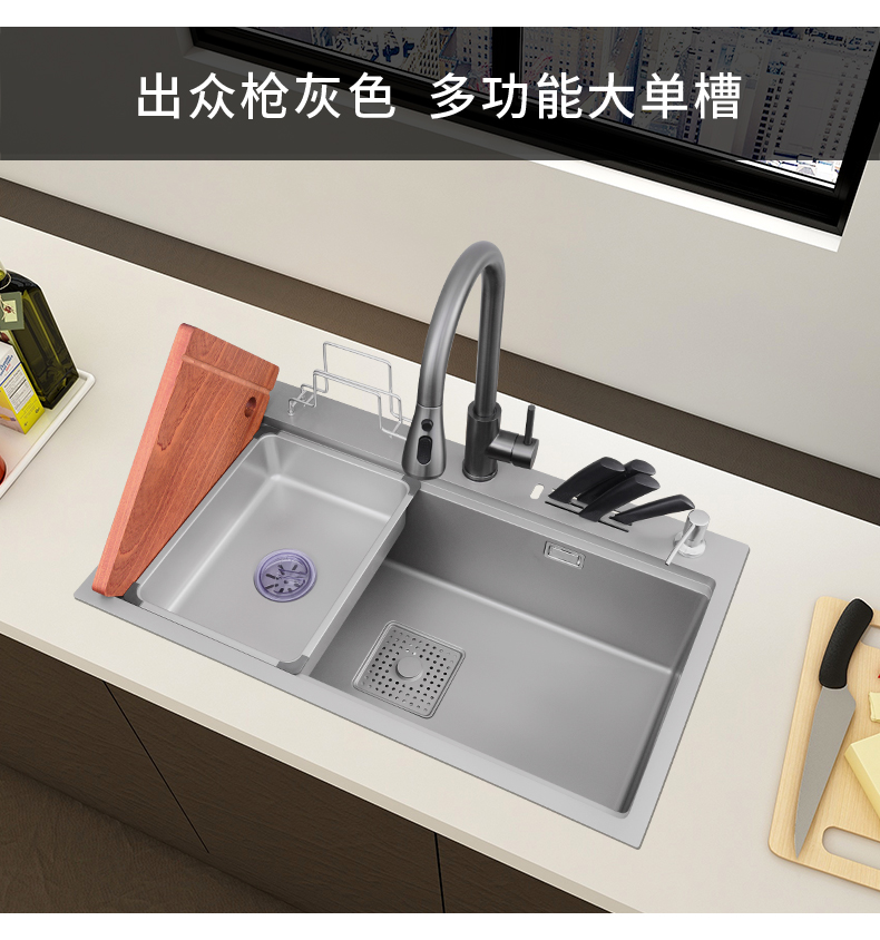 Gun gray stainless steel kitchen sink